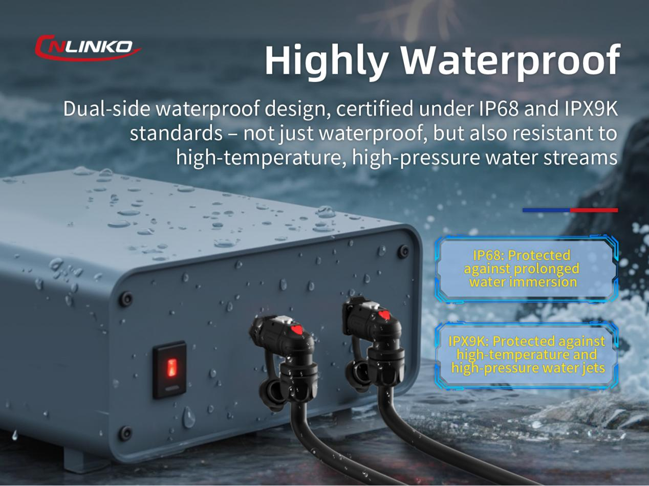 CNLINKO's 90° industrial waterproof connector holds multiple global design and utility patents, delivering: