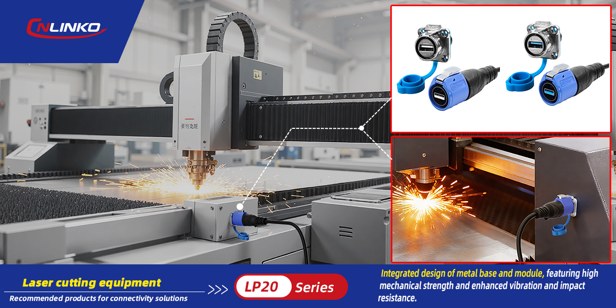 The CNLINKO LP20 series industrial USB metal socket, with its zinc alloy housing and unibody structure, is specifically built for this harsh operating condition. Its exceptional rigidity successfully neutralizes the connection risks posed by vibration and shock, ensuring the continuous and stable operation of the laser cutter.
